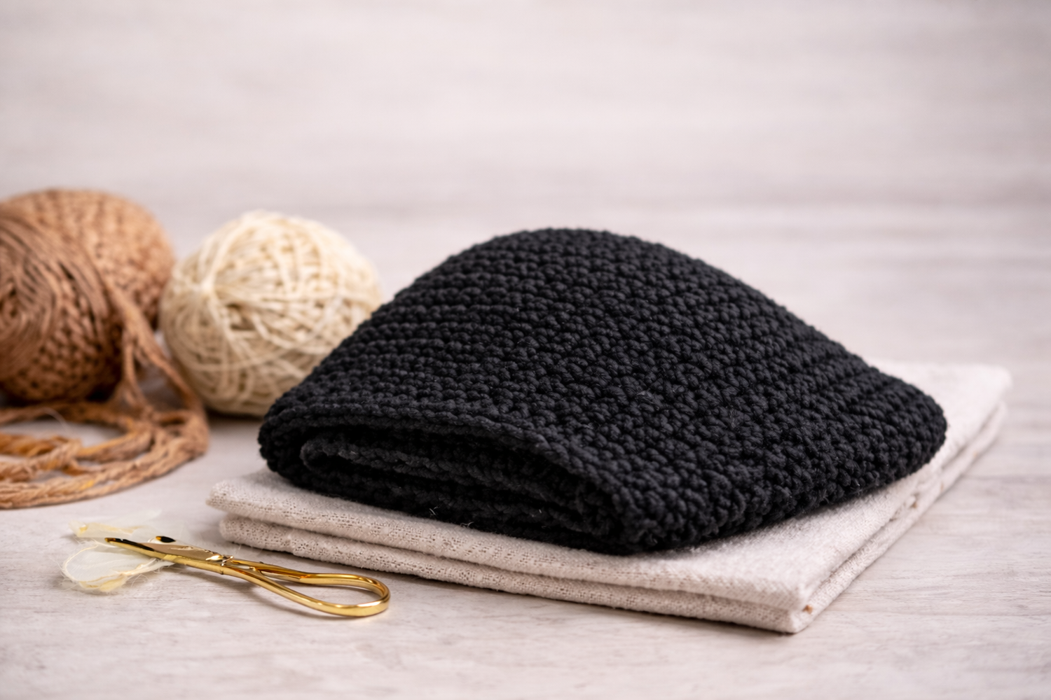 We create 100% handmade crochet pieces, thoughtfully designed and carefully crafted by hand. Each item is made stitch by stitch, ensuring durability, comfort, and uniqueness. No two pieces are exactly alike—because true handmade work carries character, detail, and soul.